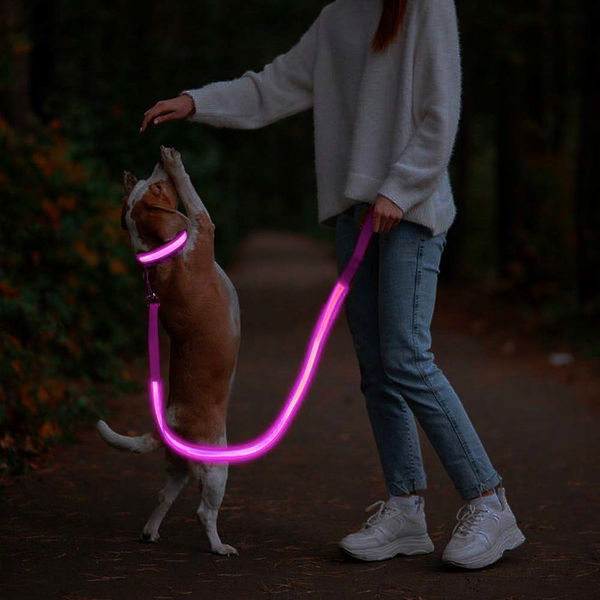 The glowing collar and leash set is visible from a distance of 300 meters, allowing you and your dog to have safe nighttime walks due to excellent visibility in the dark.