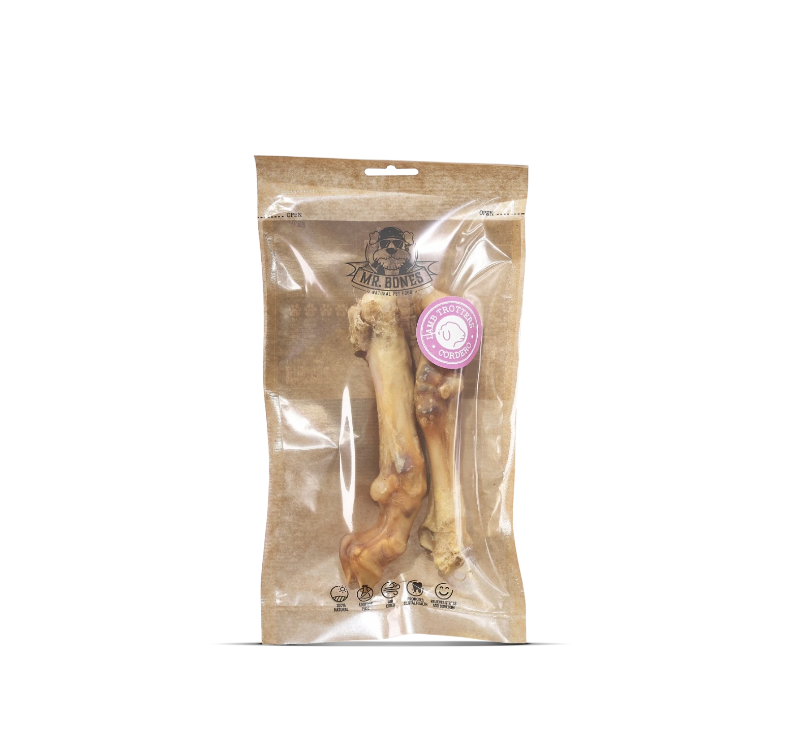 The dog will be occupied, calmed, and tired from chewing. Mr. Bones lamb legs are an excellent source of collagen. This positively affects joints, coat, and skin.