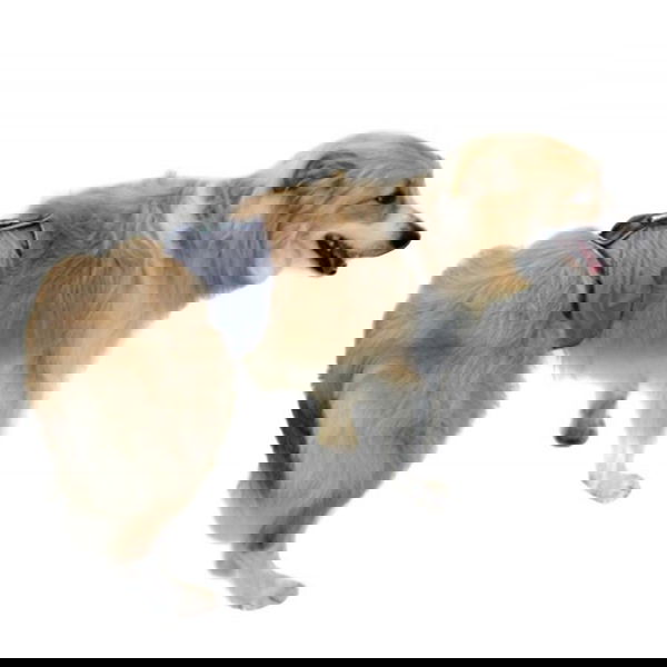 Using the diaper helps avoid unpleasant odors and urine drips on the floor or furniture. The strap wraps around the dog's belly and its perfect fit prevents urine leakage. It is made of waterproof, soft, and comfortable polyester material that stays dry and can be reused even after direct contact with urine.